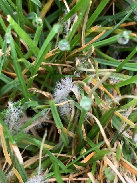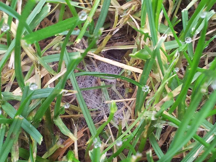 - Zálivka trávníku s důrazem na množství, čas a počasí v době aplikace. Více v článku Závlaha trávníku. Zálivkou ve večerních hodinách v letním horkém období si infekční choroby na trávník přímo zvete. Při našich pokusech, kdy je nutné vyvolat chorobu, je ideální udržovat listy trávníku stále vlhké. To se nejčastěji provádí zařízením na vytváření rosy, které mlžením udržuje listy trávníku mokré celý den i noc. Všeobecně platí rovnítko mezi vlhkostí a plísní. I rosa (vlhké prostředí) umožňuje reprodukci houby formou mycélií a spór. V případě výskytu většího množství rosy na trávníku je vhodné provést její stírání – např. širokým jemným smetákem.